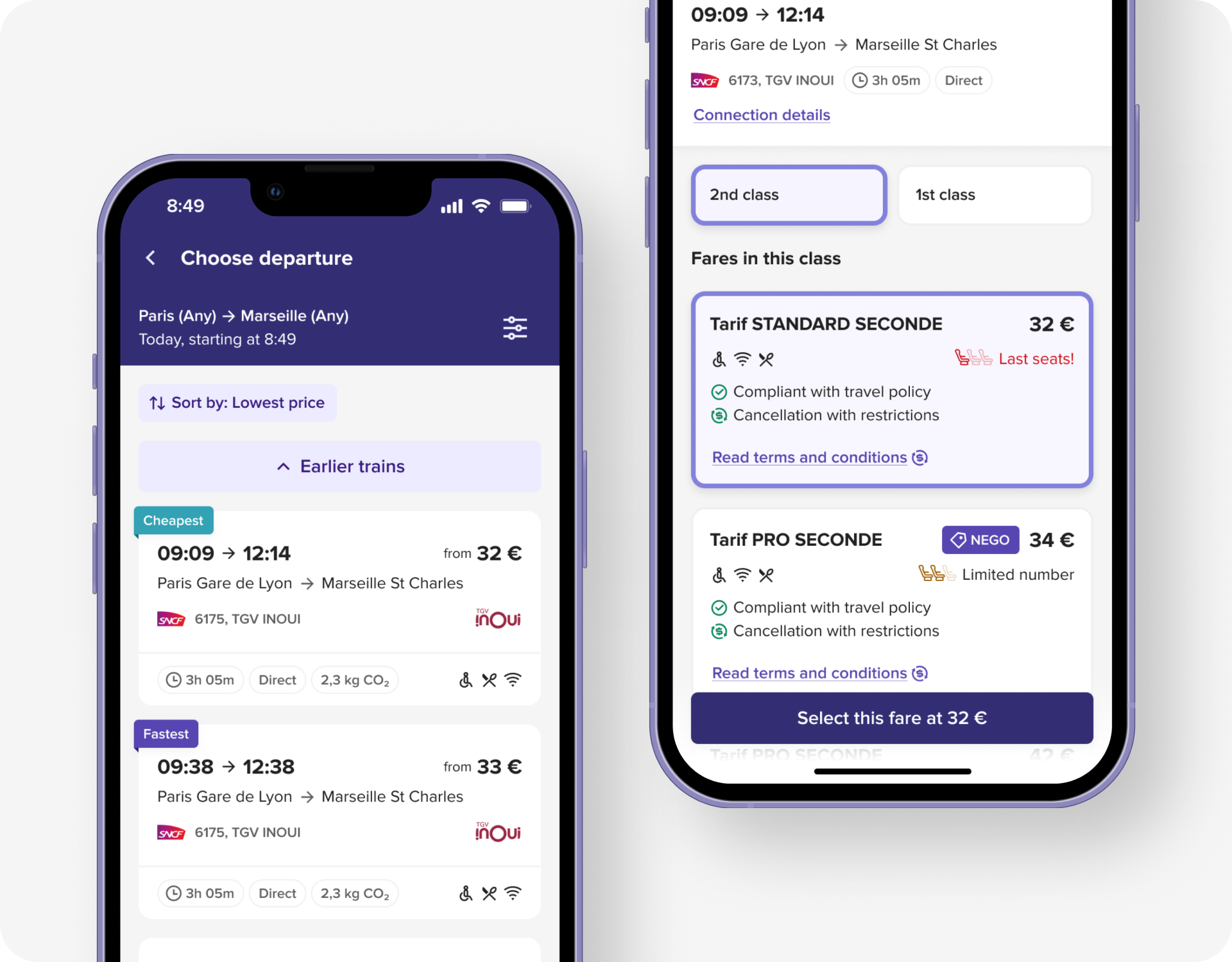 Vols, trains, hôtels, voitures : tout ce dont vos voyageurs ont besoin, réuni en un seul endroit.