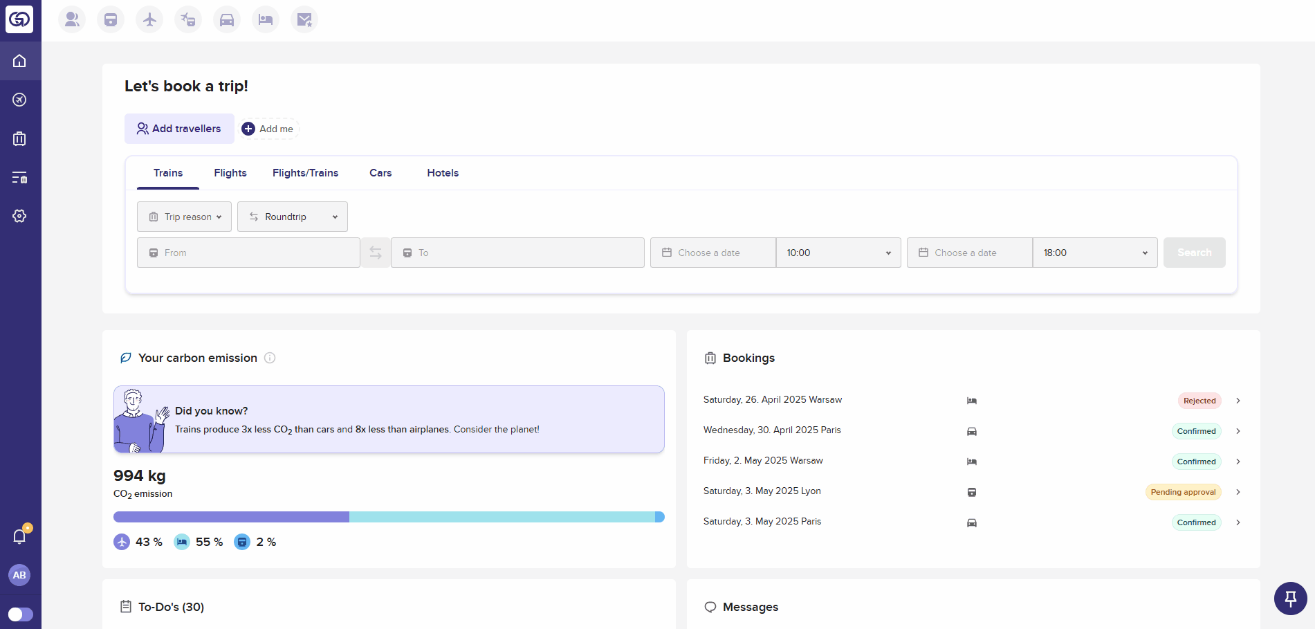 Don’t forget to make the most of your dashboard widgets. Pin key tools like Messages or your To-do list to the top, so urgent actions stay front and center. Whether you’re a self-booker, approver, or arranger, keeping everything within reach means smoother planning and faster decisions.