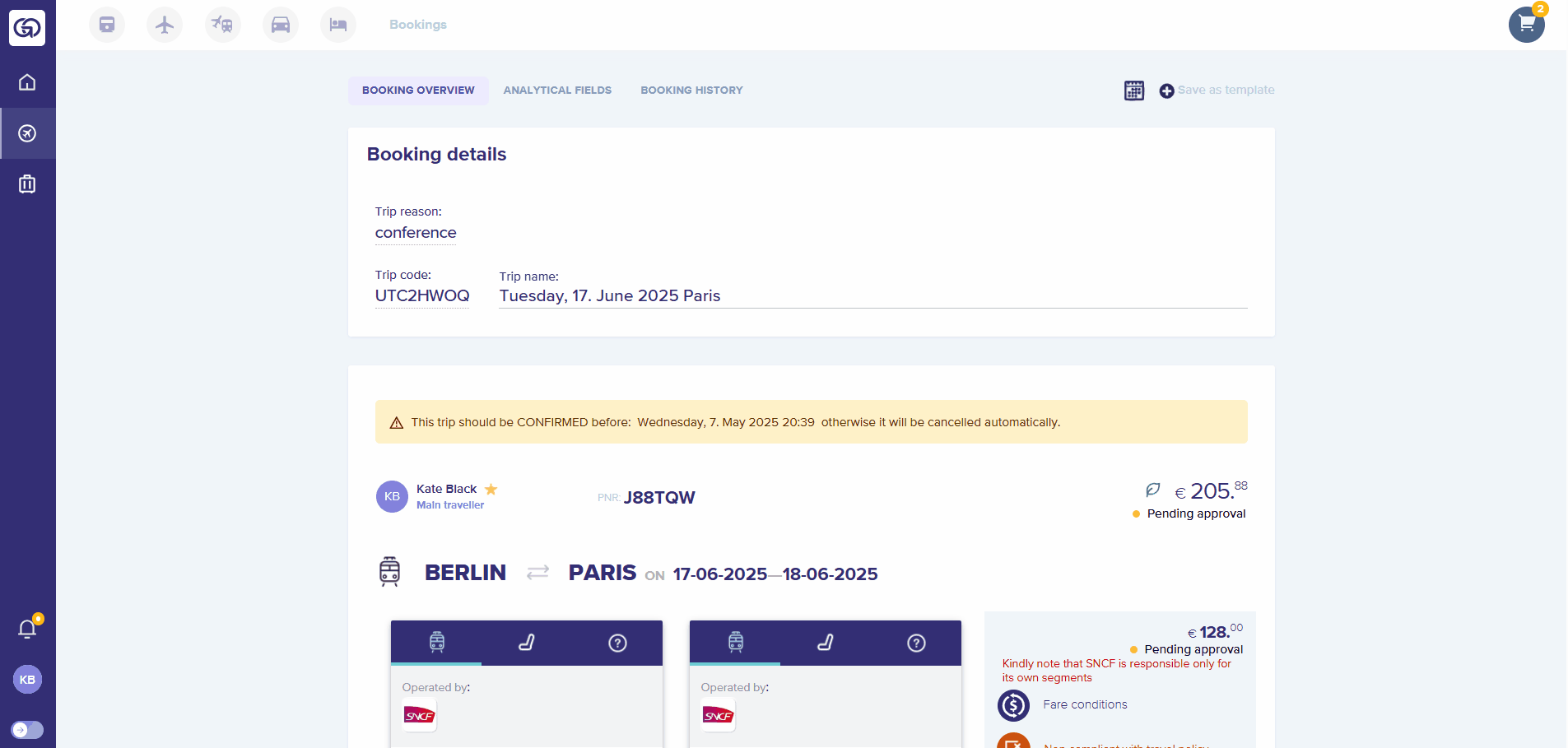 After your first few trips, save them as templates. You’ll save time and effort on future bookings. - Pin your “Top 5” to the dashboard